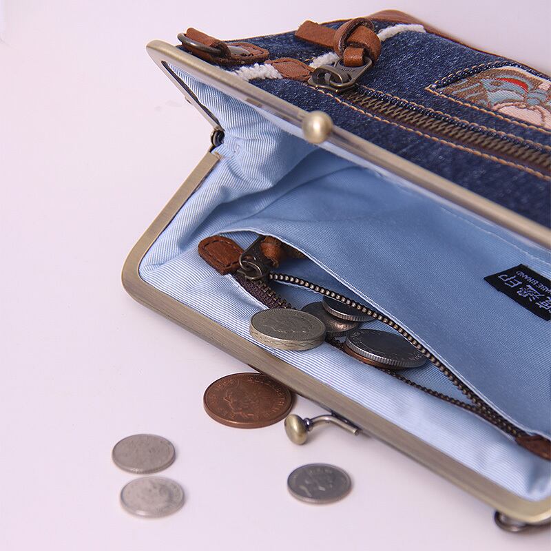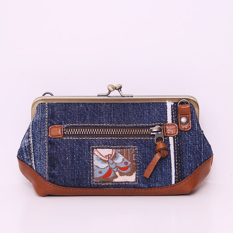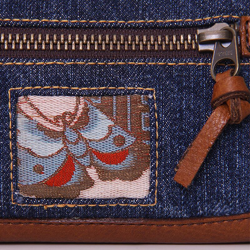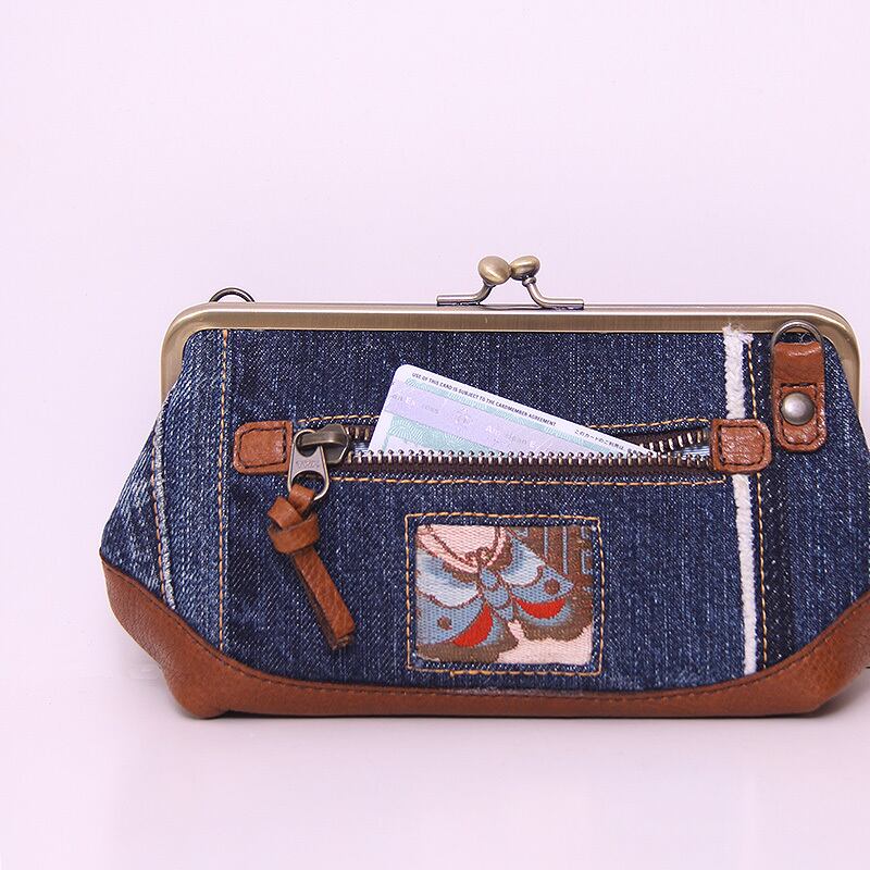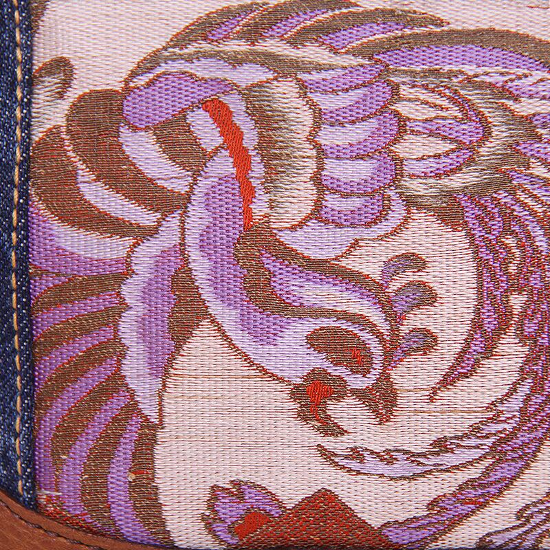 昭和初期ごろのものと思われる子供用の帯と、ユーズドデニムを合わせた、がま口ショルダーバッグです。