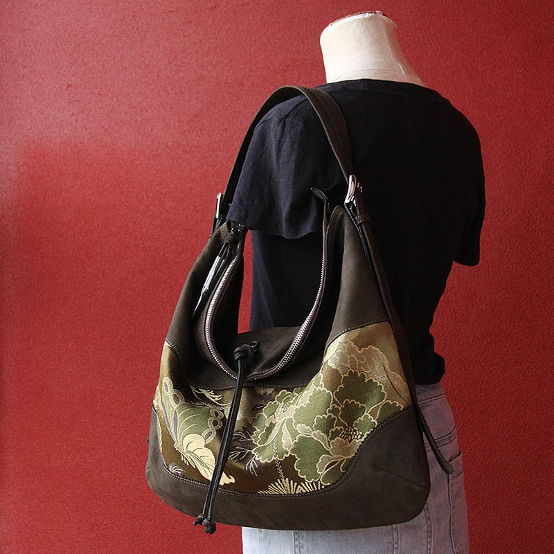 素材 帯地(古布)、ヌバック革(申し訳ありません、何の革かはわかりません。)