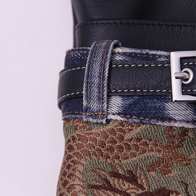 帯地(古布) 牛革 ユーズドデニム